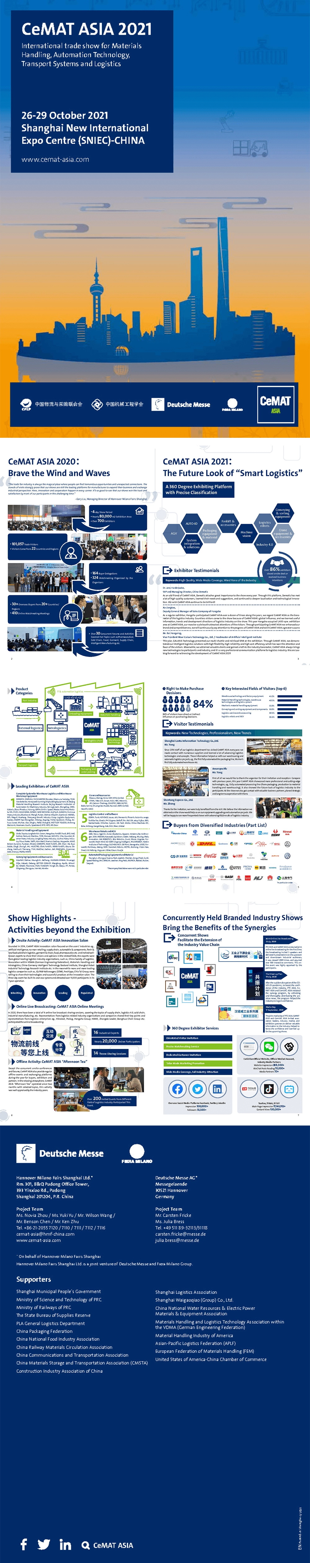 Cea de-a 22-a Expoziție Internațională de Tehnologie Logistică și Sisteme de Transport, un eveniment anual al industriei în regiunea Asia Pacific, va avea loc la Shanghai New International Expo Center în perioada 26-29 octombrie 2021. Cu tema „Logistică inteligentă”, expoziția va prezenta realizările inovatoare ale producției inteligente și va construi împreună o platformă industrială mare în diverse domenii.